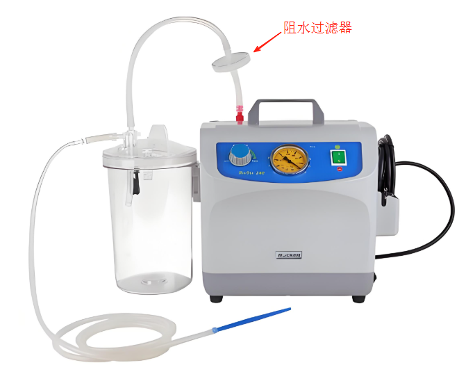為防止液體倒吸進(jìn)入真空泵,建議在廢液瓶和真空泵之間鏈接阻水過(guò)濾器,以防止抽吸過(guò)程中液體隨著氣流進(jìn)入真空泵,長(zhǎng)時(shí)間的累積,導(dǎo)致真空泵內(nèi)部軸承生銹卡住。連接方法如圖4所示。另外注意Biovac240主機(jī)背后有散熱風(fēng)扇,在使用過(guò)程中應(yīng)禁止液體灑入,導(dǎo)致機(jī)器短路故障。建議將真空泵放置在安全柜或?qū)嶒?yàn)臺(tái)下方,遠(yuǎn)離一切可能接觸到液體的環(huán)境。如不慎將液體灑入風(fēng)扇,應(yīng)立即關(guān)機(jī),然后聯(lián)系客服人員。